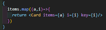위에 사진에서 items={a} , i={ i } 처럼 작명+{state명 or 변수명} 형식을 추가해 준다.