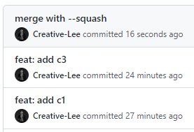 --squash 옵션을 추가하면 합쳐질 branch의 커밋 이력을 하나의 커밋으로 정리할 수 있습니다.
