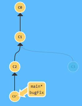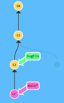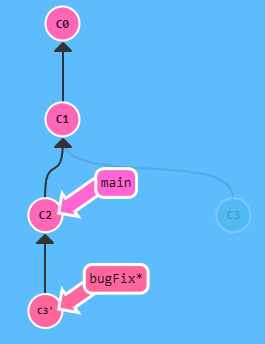 그럼 이제 rebase 해봅시다! (bugFix branch C3에서 진행합니다.)