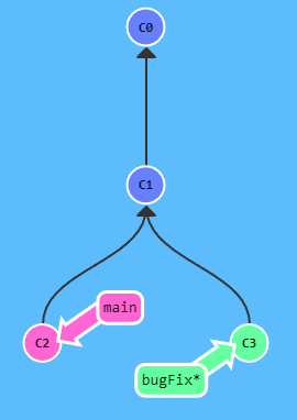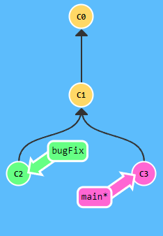 이후 bugFix 브랜치가 생성되었고 버그는 C3 commit으로 해결되었습니다.