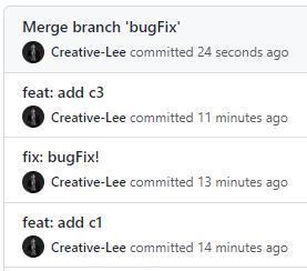 커밋 시간과는 무관하게 bugFix commit 더 상단에 위치하네요!