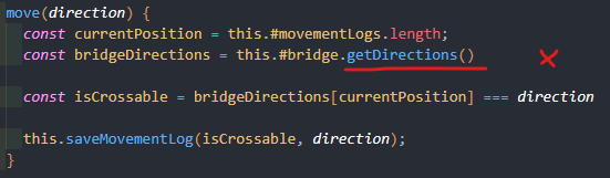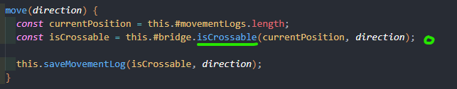 이를 개선하기 위해 다리의 방향과 사용자 방향 입력을 비교하는 로직을 Bridge 클래스 내부로 넣어보았다.