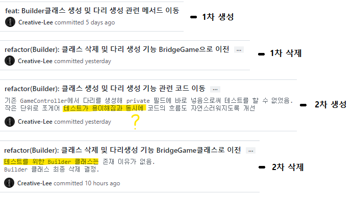 다리 성성을 BridgeGame 클래스 외부에서 해야한다는 결론이 나왔다.