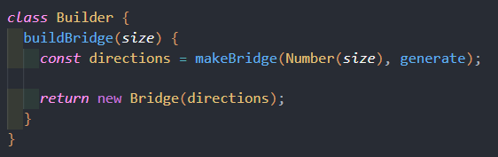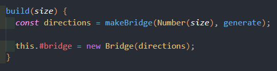 미션에서 주어진 다리 생성 함수 makeBridge 를 통해 Bridge 클래스를 초기화하여 필드 변수에 저장하는 구조였다.