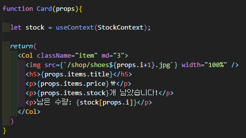 Card 컴포넌트에서 받아서 stock이라는 변수로 그대로 사용할 수 있게 되었슙니당~
