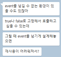 isHide 함수에 event를 인자로 받으면 미래에 언젠가 재사용 하기 까다로울 수 있으니