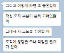 이렇게 로직을 분리해서 각 함수가 1가지 기능을 담당하게 코드를 짜 놓으면 코드 수정에도 유리합니다.