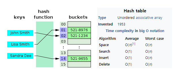 - 하나의 bucket에 여러개의 자료들이 연결될수록 시간복잡도가 증가합니다.